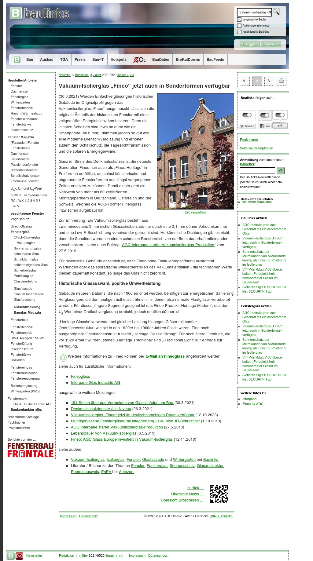 - Vakuum-Isolierglas „Fineo“ jetzt auch in Sonderformen verfügbar, Baulinks